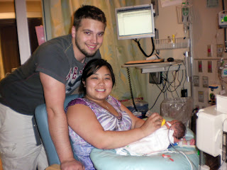 We go to see our baby boy at least once a day, if not more. Like I said before, it seems like everytime we go to see him he's made so much progress. It's amazing how just a few ounces can make such a difference. I was looking through all of the pictures that we have of him...and believe me, there's a ton...but you can definitely see a HUGE difference in him from the time he was born to now. Gabriel is now breathing all on his own. :) Though, this might not seem like a big deal to some...for us, it's huge. He's also receiving breast milk every 3 hours through the feeding tube that goes straight to his stomach. He still can't eat on his own, but his belly is getting stronger, so we know it won't be too long. He smiles ALL the time...tonight he was making faces too...he even crossed his eyes at one point. It was so cute and funny...Jesse and I just laughed. He's so calm too. He hardly ever cries...even when they take a blood sample from him. He just seems to go with the flow now! :)